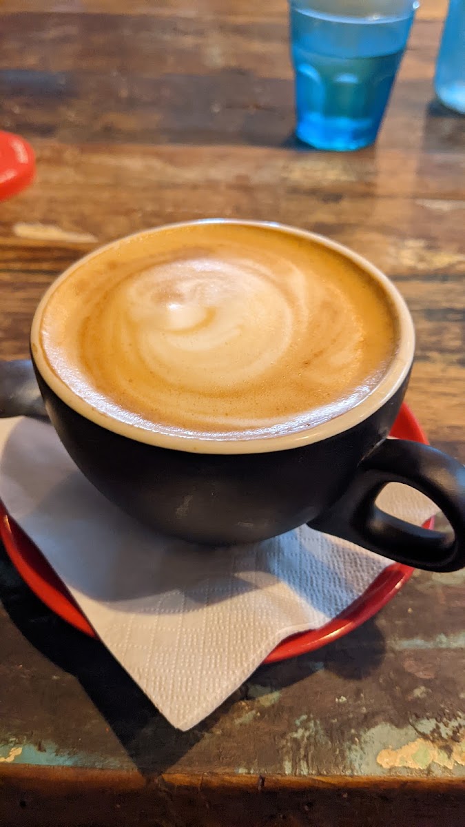 What a great cafe. They were super busy on a Sunday morning and handled all the orders professionally, promptly and with a smile. There was a long wait for coffee—the machine didn’t stop the whole time we were here. After we had our first coffee, we knew why: it’s excellent. The meals are healthy, tasty and there’s a lot of variety. Something for everyone.