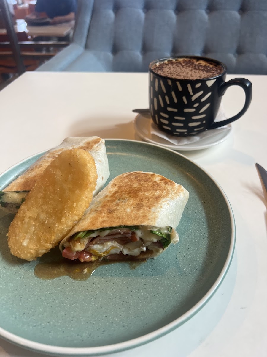 Really good brekkie spot with reasonable prices! Am an Indian who eats chicken only and its been a bit hard to find chicken dishes which suit my taste preferences, which is totally on me. I had the grilled chicken panini with two scoops of frosted mango ice cream. The panini was so good with all the ingredients coming together to build up joy on your taste buds! The bread of the panini was really soft and maintained that softness even after it went cold as I had it take-out. The mango ice-cream was excellent and tasted just like the juicy suck-n-drink mangoes during summers in my motherland, Kerala. Reminded me of home :) Really nice Ambience and service too. I got my food within just a couple of minutes. Satisfied to the core!
